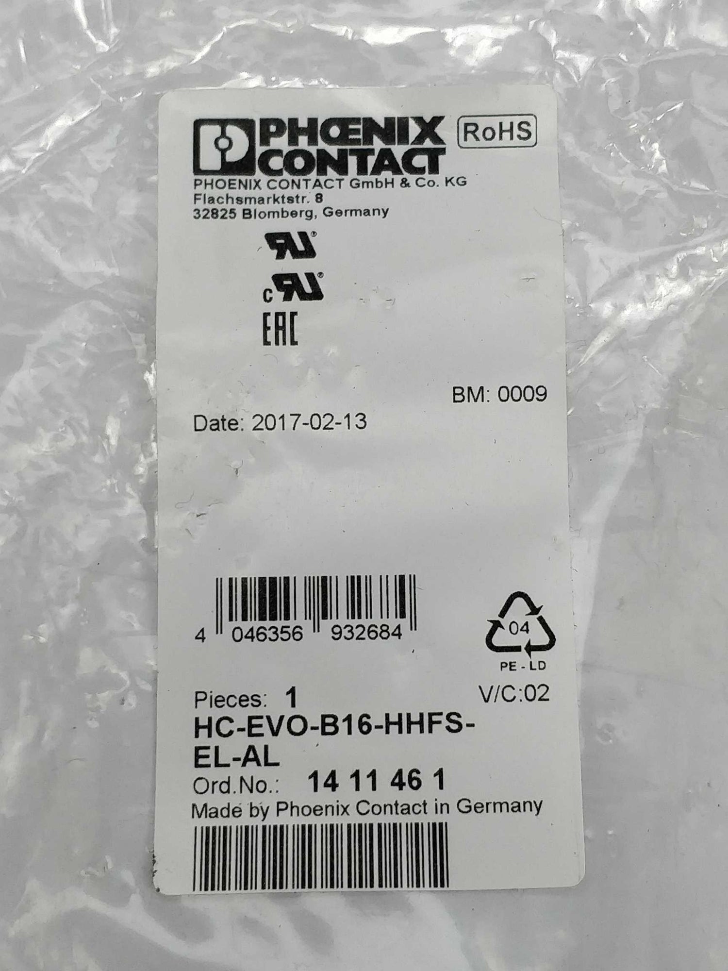 Phoenix Contact HC-EVO-B16-HHFS-EL-AL Sleeve housing
