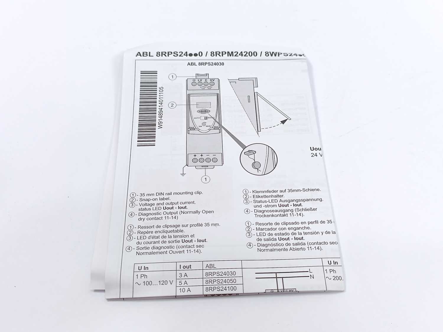 Schneider Electric ABL8RPS24050 Modicon switchmode POWER SUPPLY