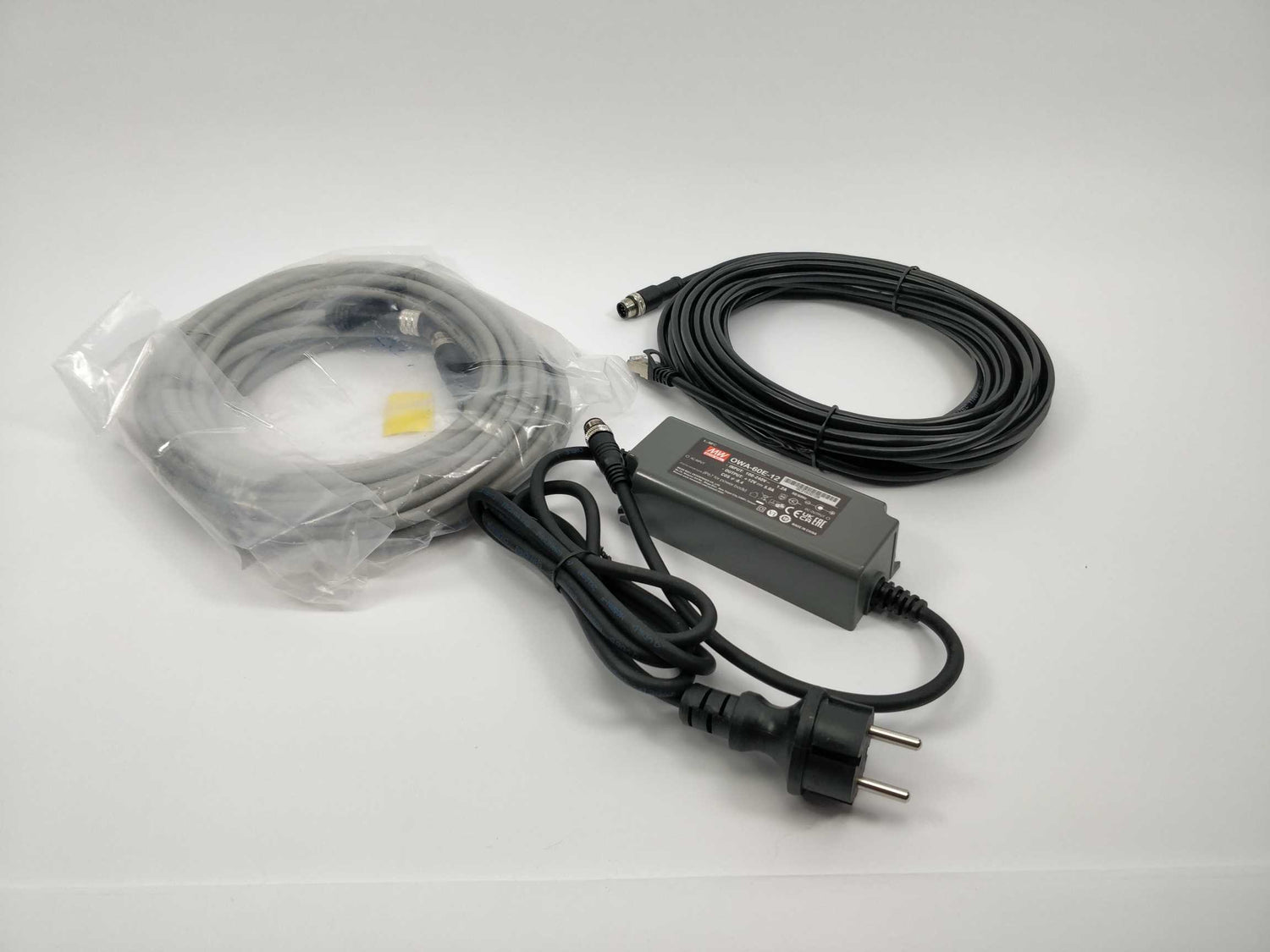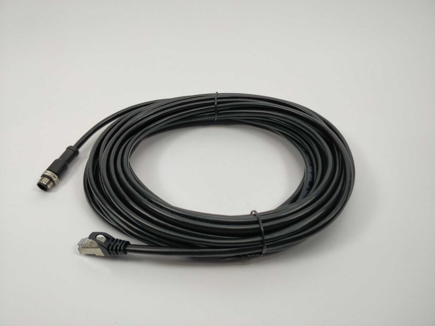 With extension cable. With M12 to LAN cable, 10m.