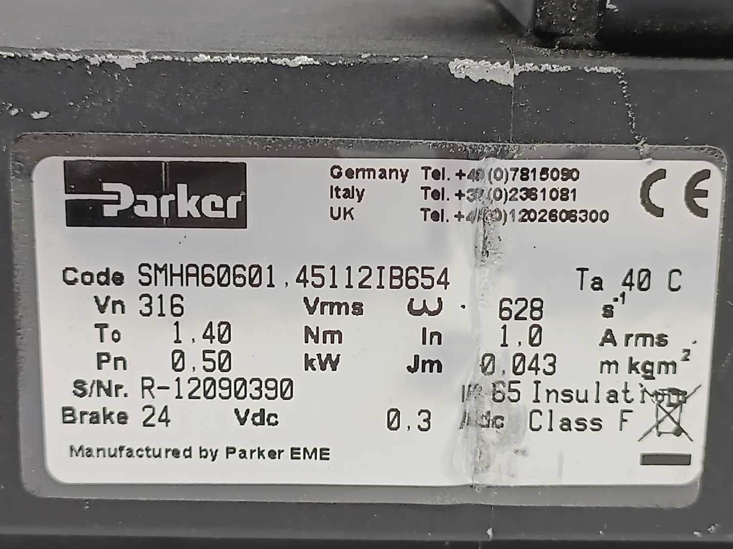 Parker SMHA60601.45112IB654 Low Inertia Servo Motor 0,50kW