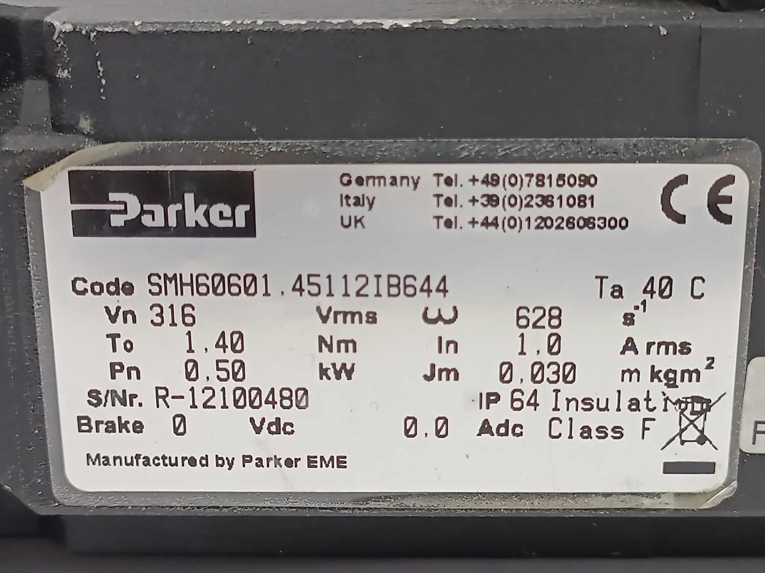 Parker SMH60601.45112IB644 Low Inertia Servo Motor 0,50kW