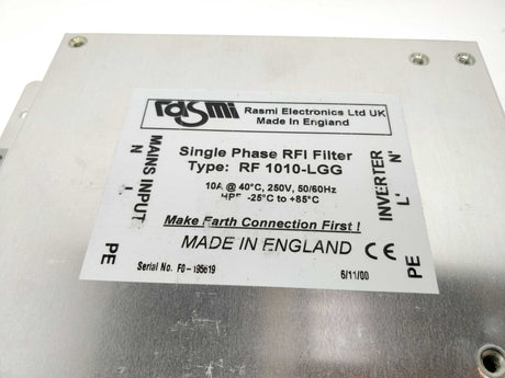€47,20(Ekskl. moms)Enhedspris/Ikke tilgængelig€59,00(Inkl. moms)Enhedspris€0,00/Ikke tilgængeligMeget få på lager (1 enhed)Rasmi A10000-FIV1010-RE Single Phase RFI Filter