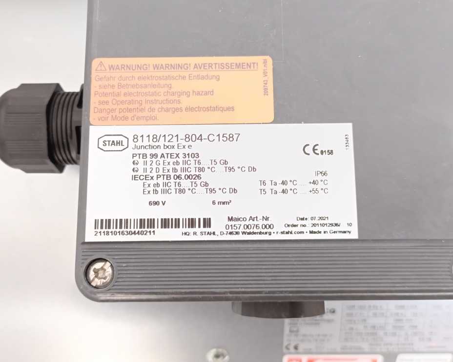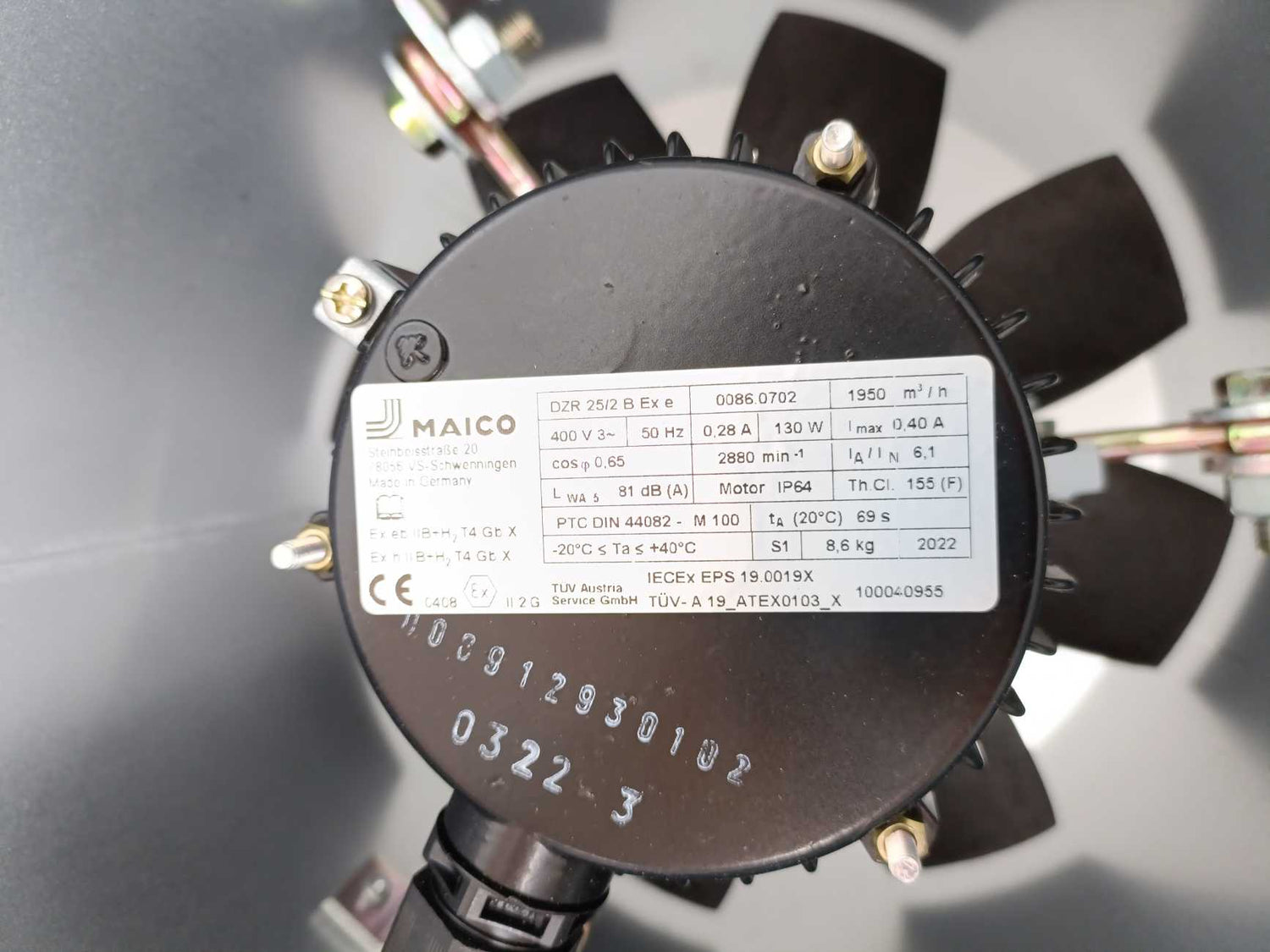 MAICO DZR 25/2 B Ex e Stahl 8118/121-804-C1587 Axial duct fan w/ Junction Box