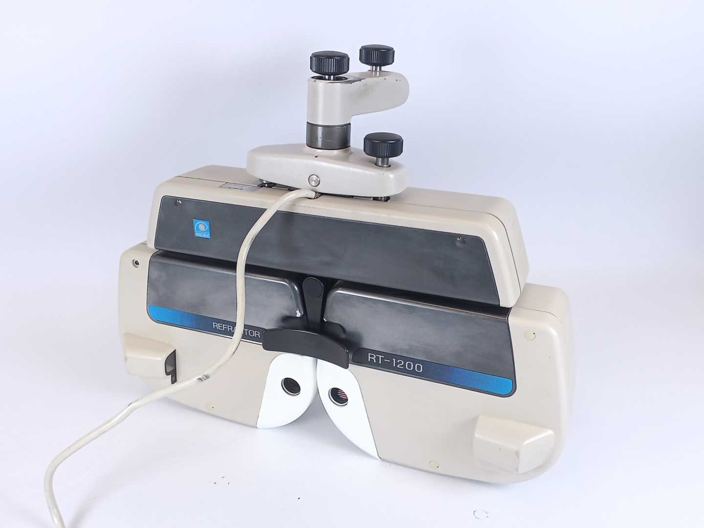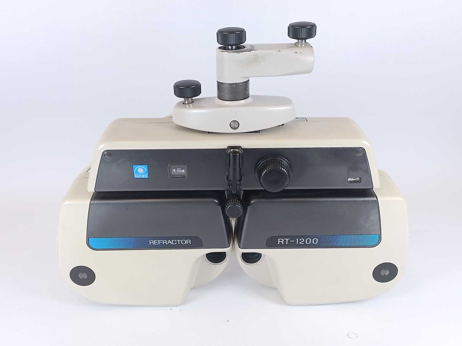 Has discoloration. Has scratches. Has dents. Has stains. Refer to photos. w/ Nidek RT-1200U Refractor Head and Control Box w/ Accessories
