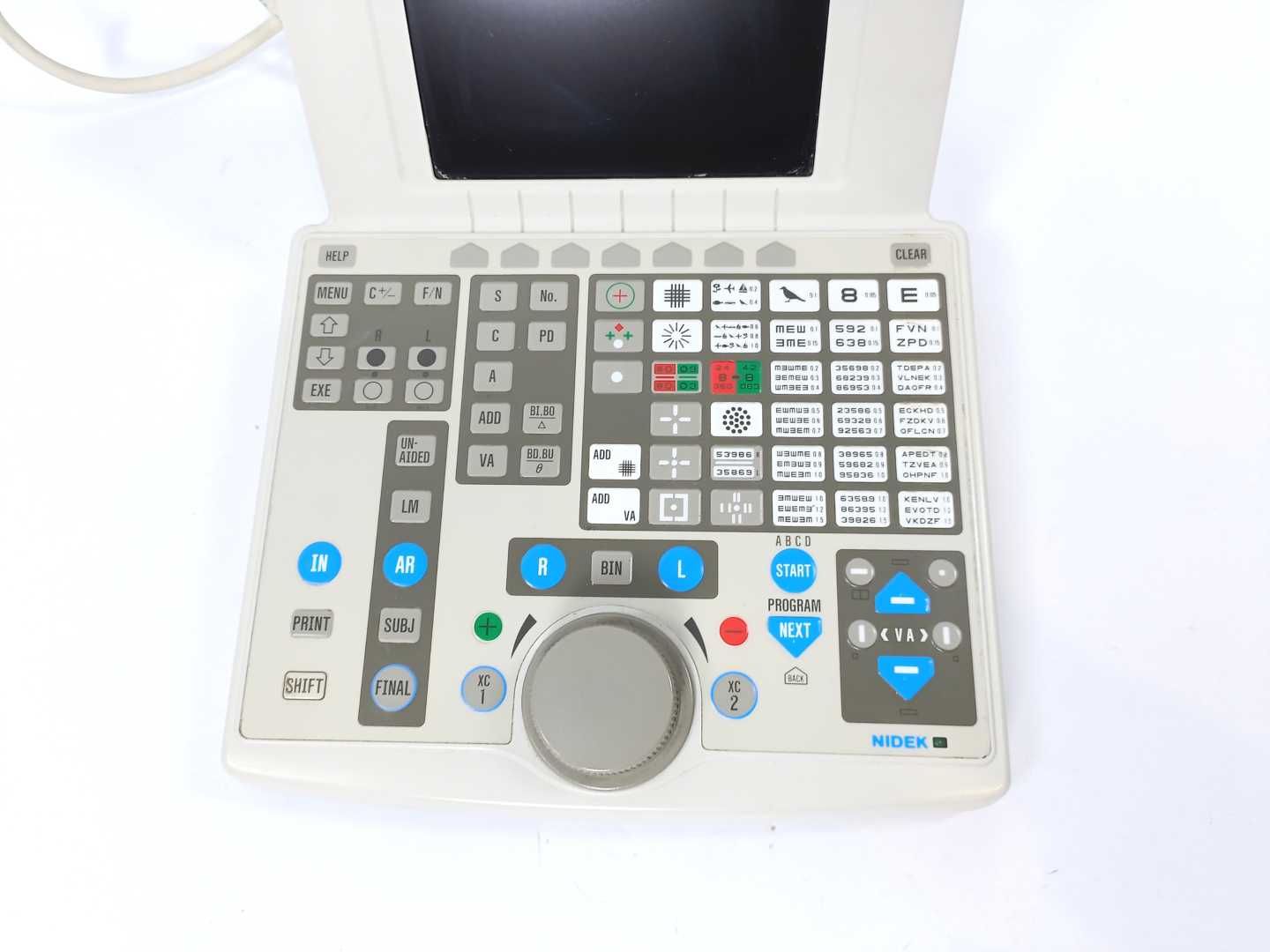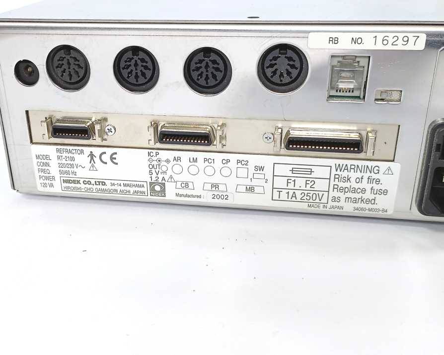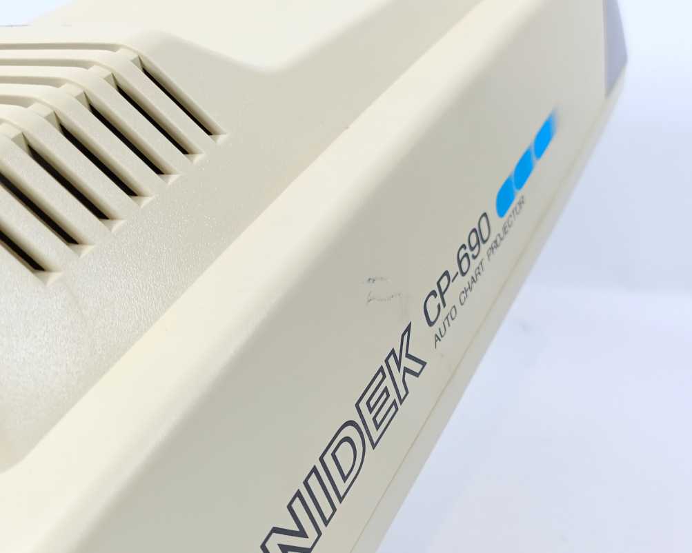 Nidek RT-2100 Refractor: Powers up. Tested ok. Has broken plastic from heat. Has a tear on the outer cable protector, not affecting the functionality. Refer to photos. Nidek RT-2100 Controller: Powers up. Tested ok. Refer to photos. Nidek CP-690 projector: Powers up. Tested ok. Has discoloration. Refer to photos. Accessories: Refer to photos.