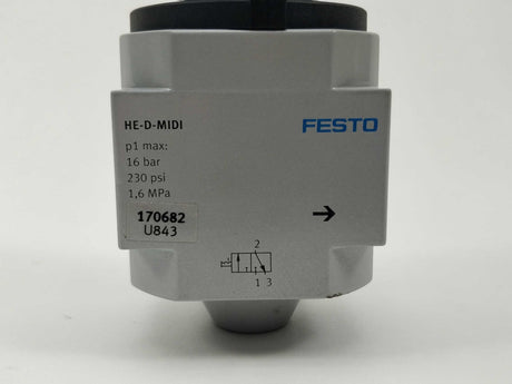 €23,20(Ex. VAT)Unit price /Unavailable€29,00(Incl. VAT)Unit price€0,00 /UnavailableVery low stock (1 unit)Festo 170682 HE-D-MIDI Shut off valve