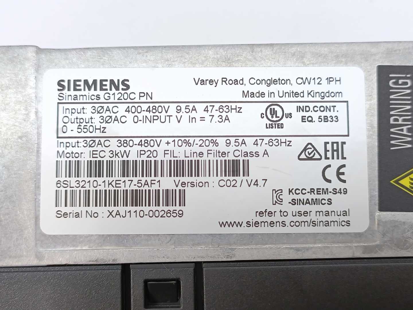 Serial Number: 6SL3210-1KE17-5AF1