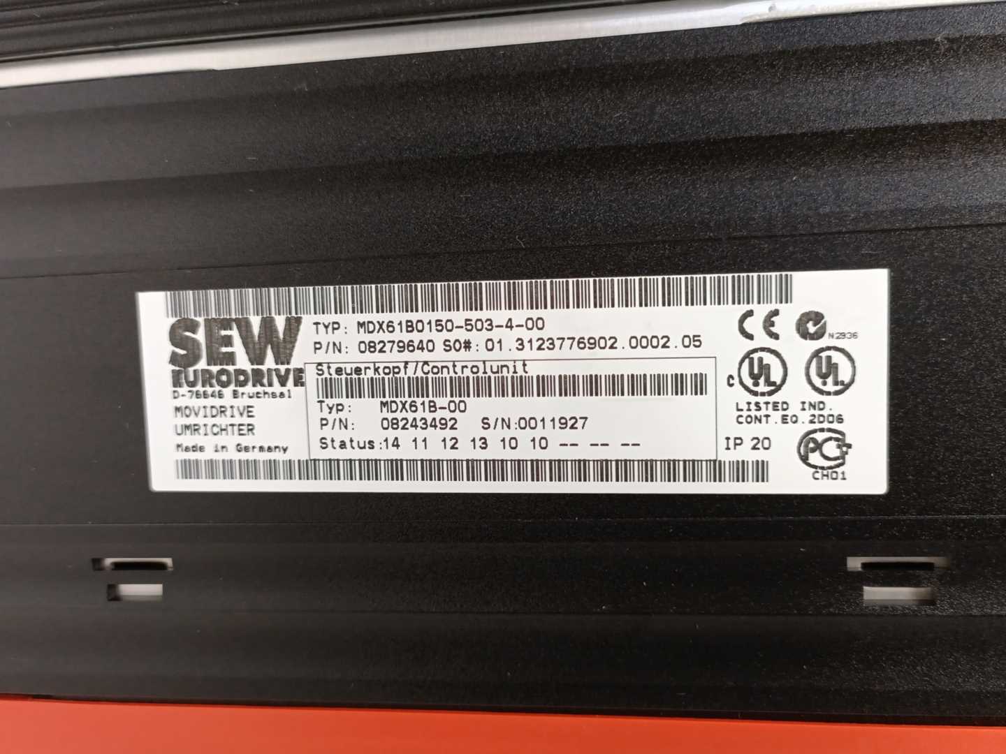 SEW-EURODRIVE MDX61B0150-503-4-00 08279640 Movidrive w/ MDX61B-00 Control Unit