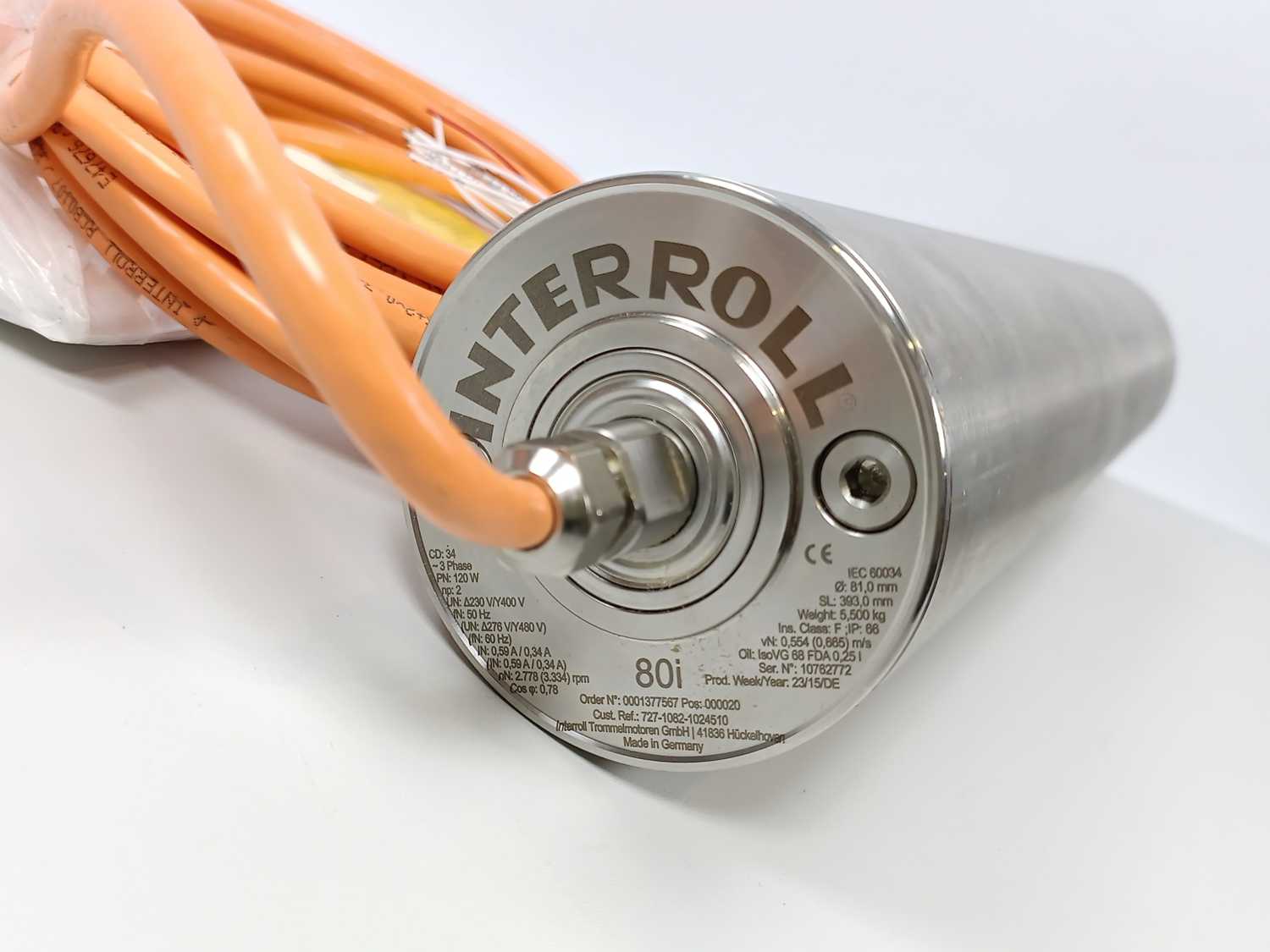 Interroll 80i Drum Motor 3 Phase, Ø: 81,0mm, SL: 393,0mm PN: 120W