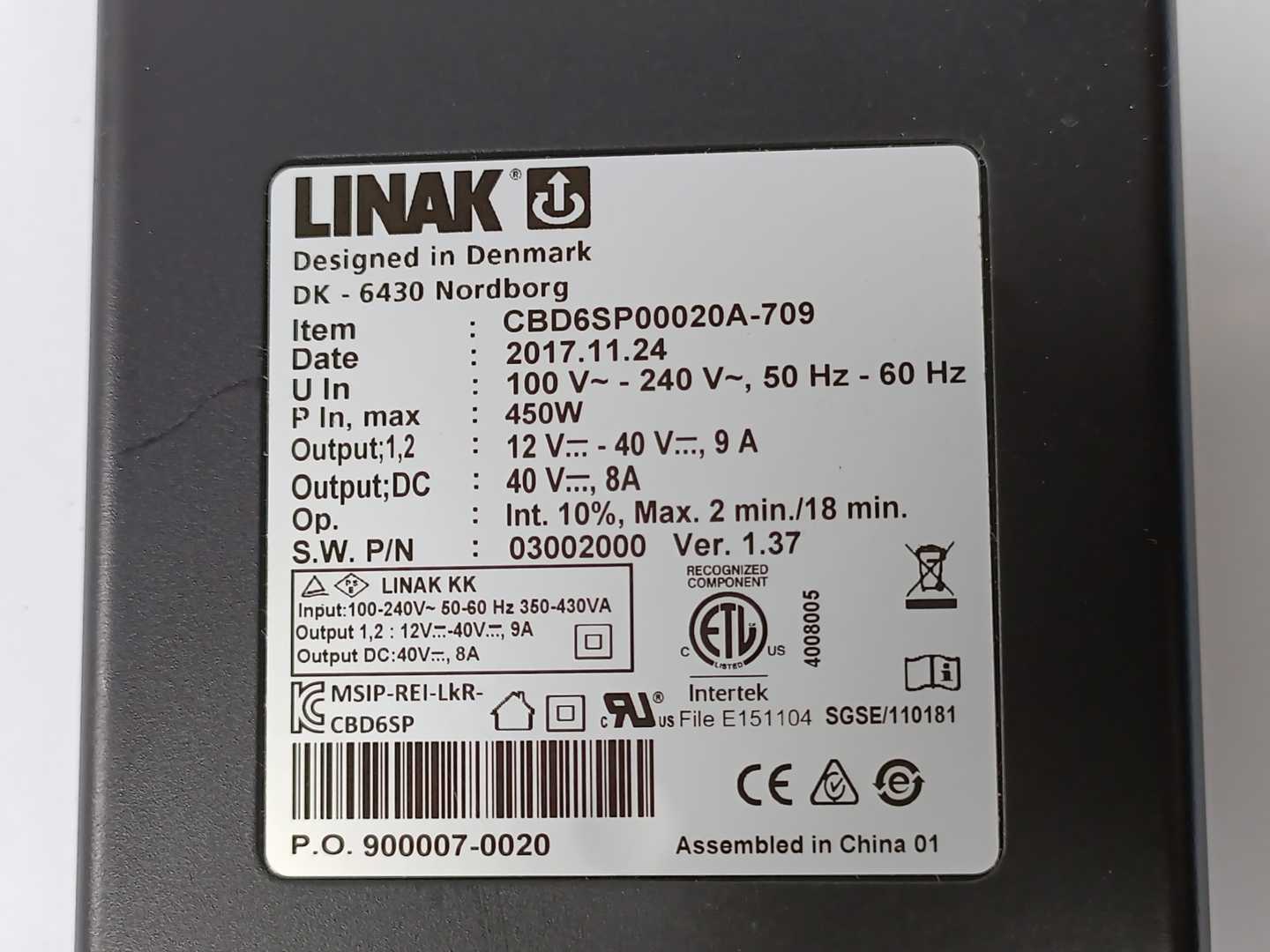 LINAK CBD6SP00020A-709 Control Box, 100V-240V, 50-60Hz, 450W