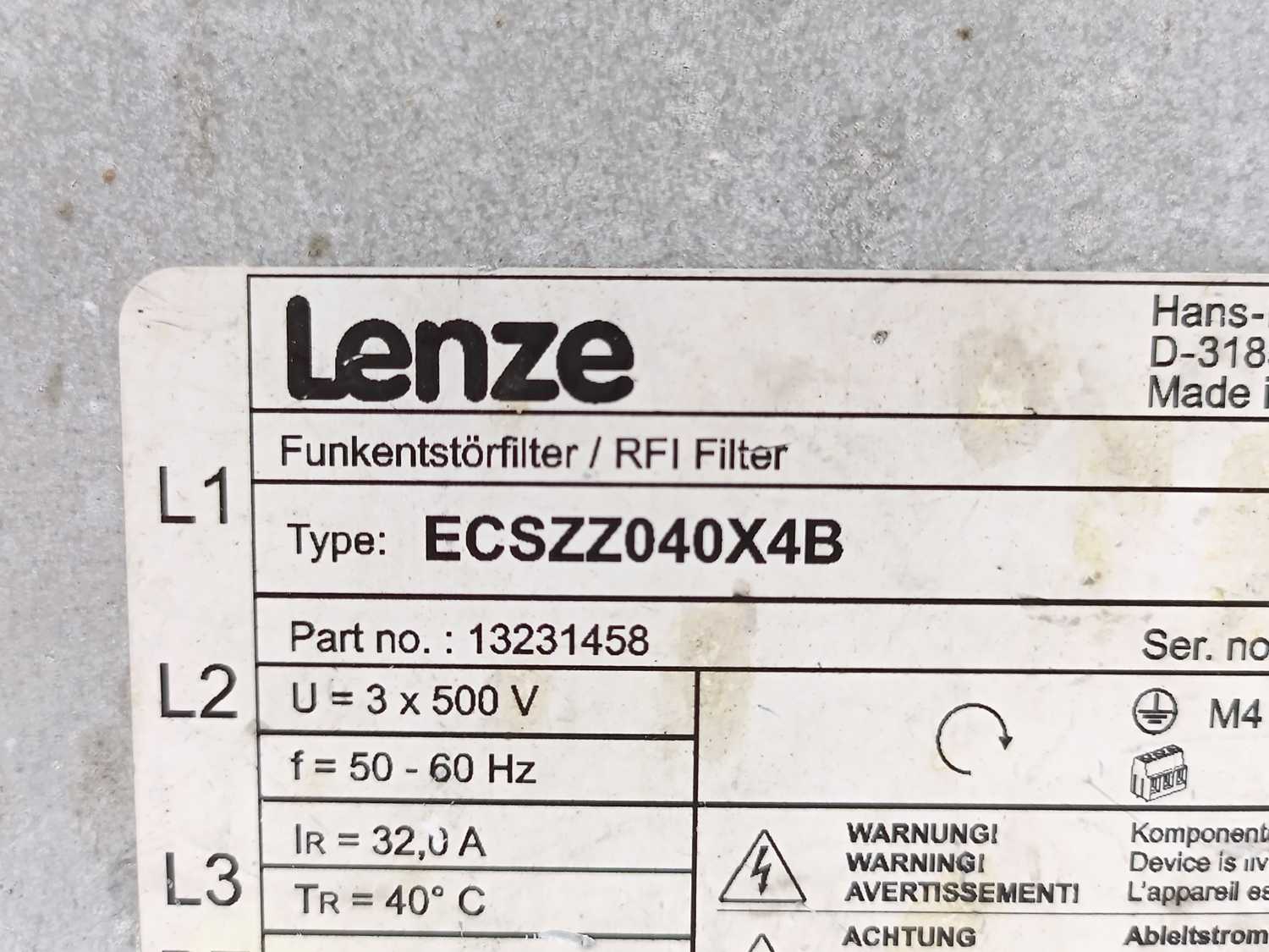 LENZE ECSZZ040X4B 13231458 Servo Drive RFI Noise Filter