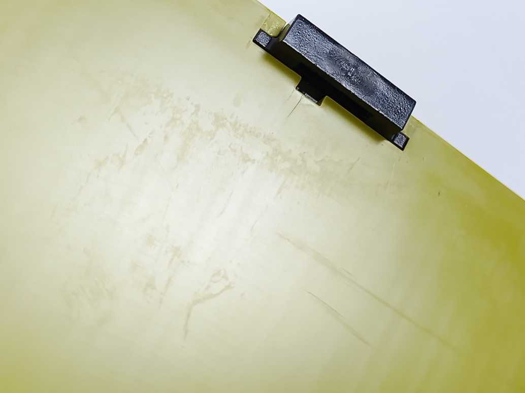 Has discolouration. Has stains. Has scratches. Refer to photos.