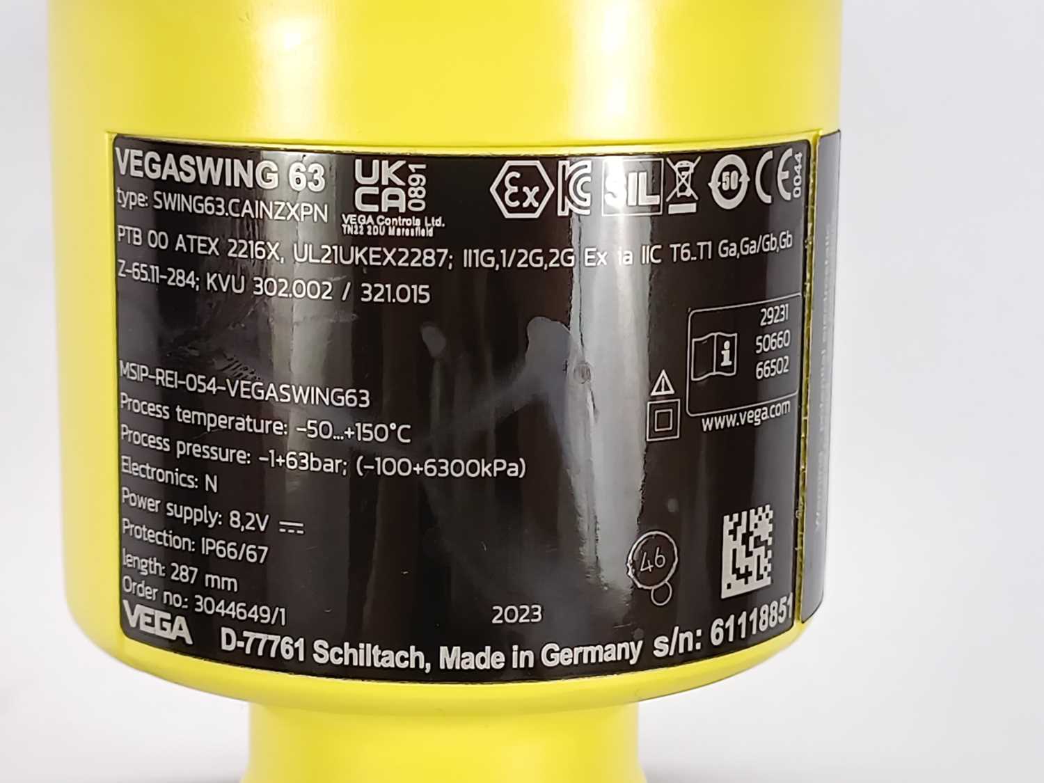 Vega VEGASWING 63 Liquid vibrating level switch 287mm, mounted not used.