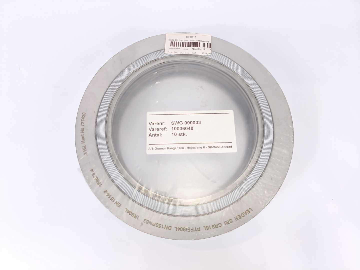 LEADER SRI 316L PTFE/904L DN150PN63 IR904L EN1514-2 Spiral Wound Gasket 10 Pcs.