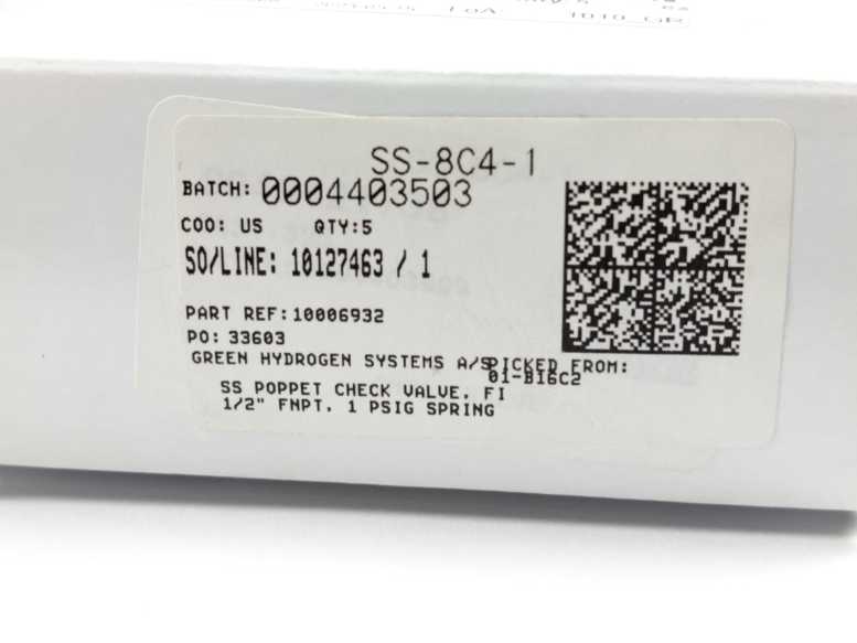 Swagelok SS-8C4-1 Stainless Steel Poppet Check Valve 5 Pcs.