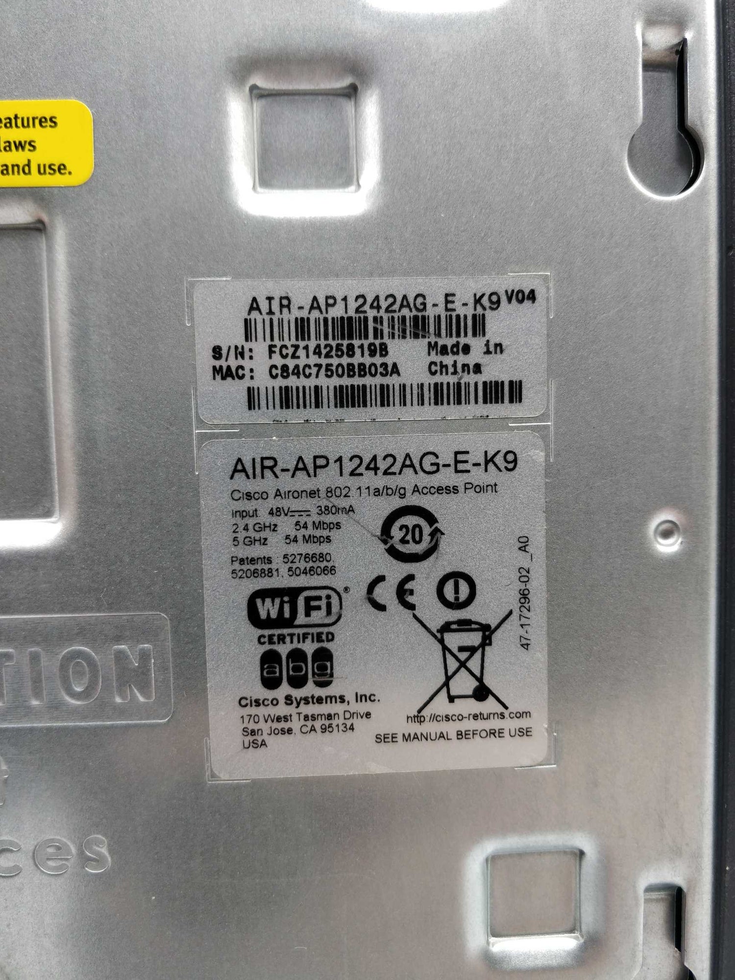 Serial Number: AIR-AP1242AG-E-K9